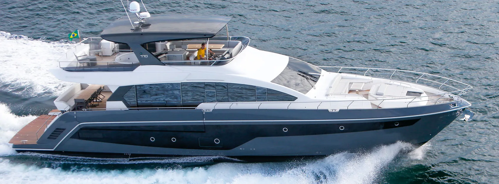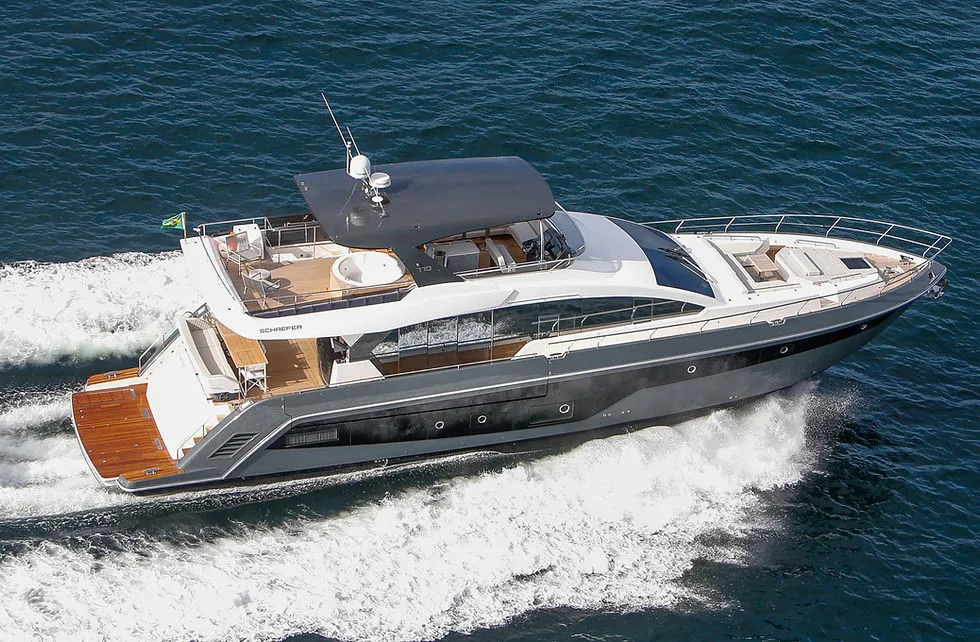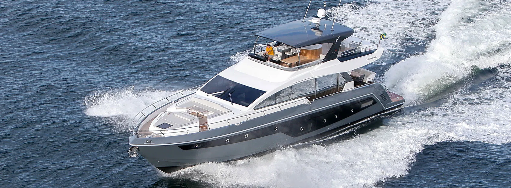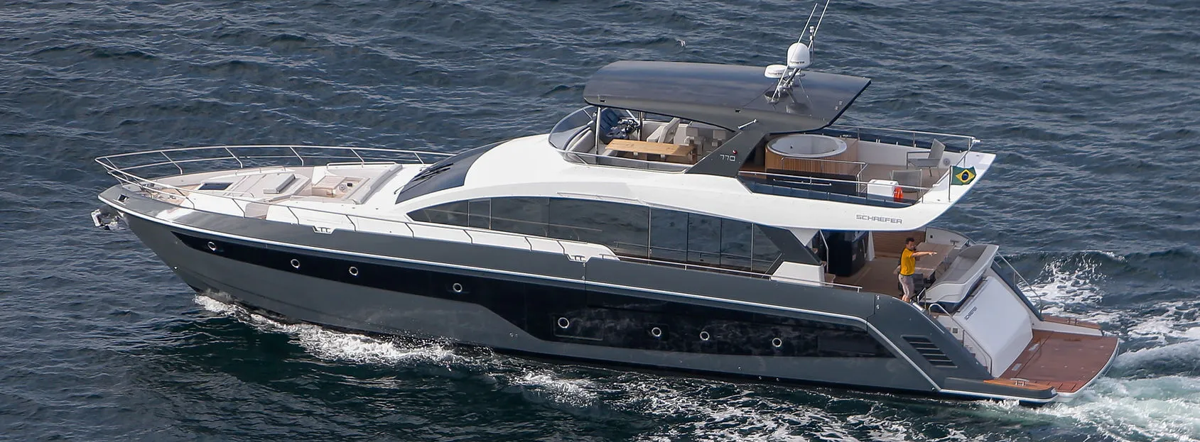 A Schaefer 770 é uma revolução no design e no conceito de vida a bordo. Suas varandas laterais em ambos os lados, e o deck totalmente nivelado, proporcionam uma ampliação das áreas de lazer e convivência, integrando salas, cozinha, bar, a praça de popa, e o mais importante: o mar.