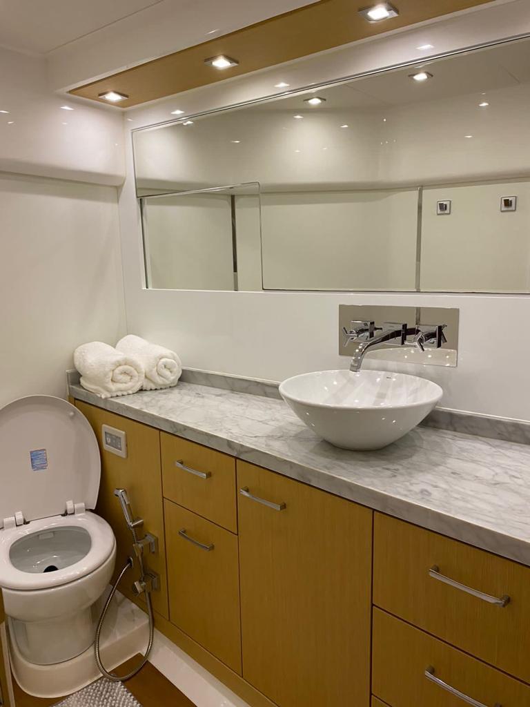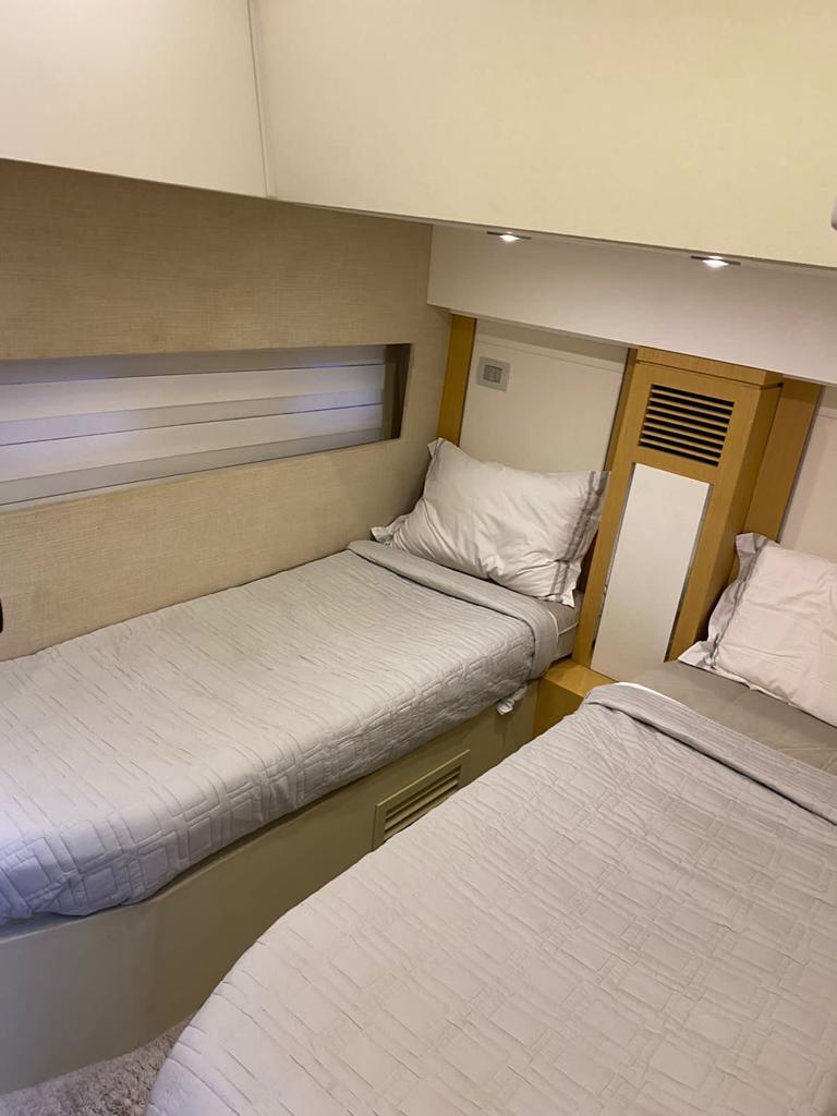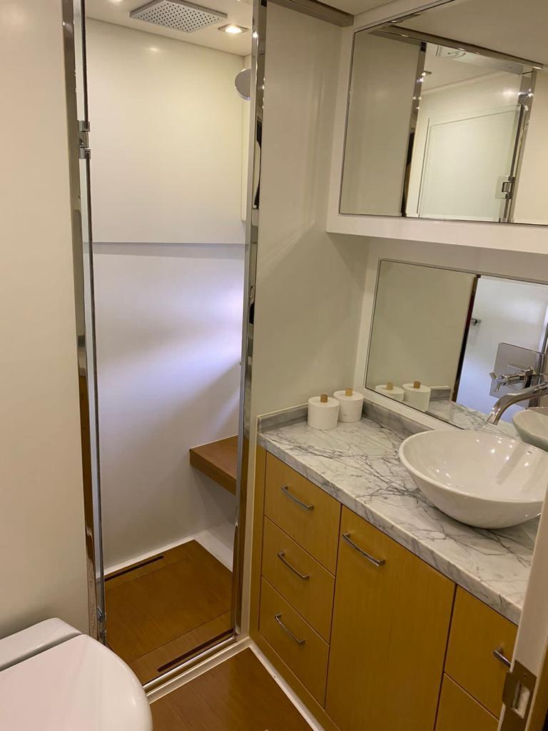 Gerador Cummins Onan 21KVA, 2 telas Axion 16", hard top móvel, toldo stobag elétrico, plataforma submergível, luzes subaquáticas, tenda de proa, suporte de bote, icemaker, adega, salvatagem completa, tomada de cais, 6 defensas, 6 máquinas de ar 68.000 btu, 3 suítes, cabine de marinheiro, 5 televisores.