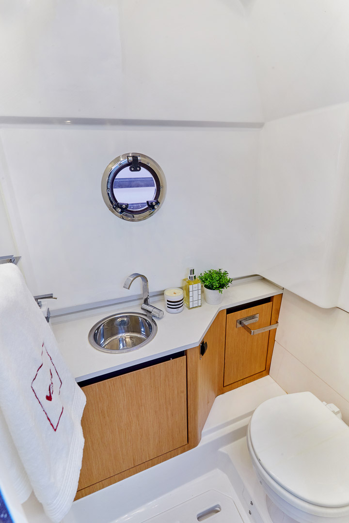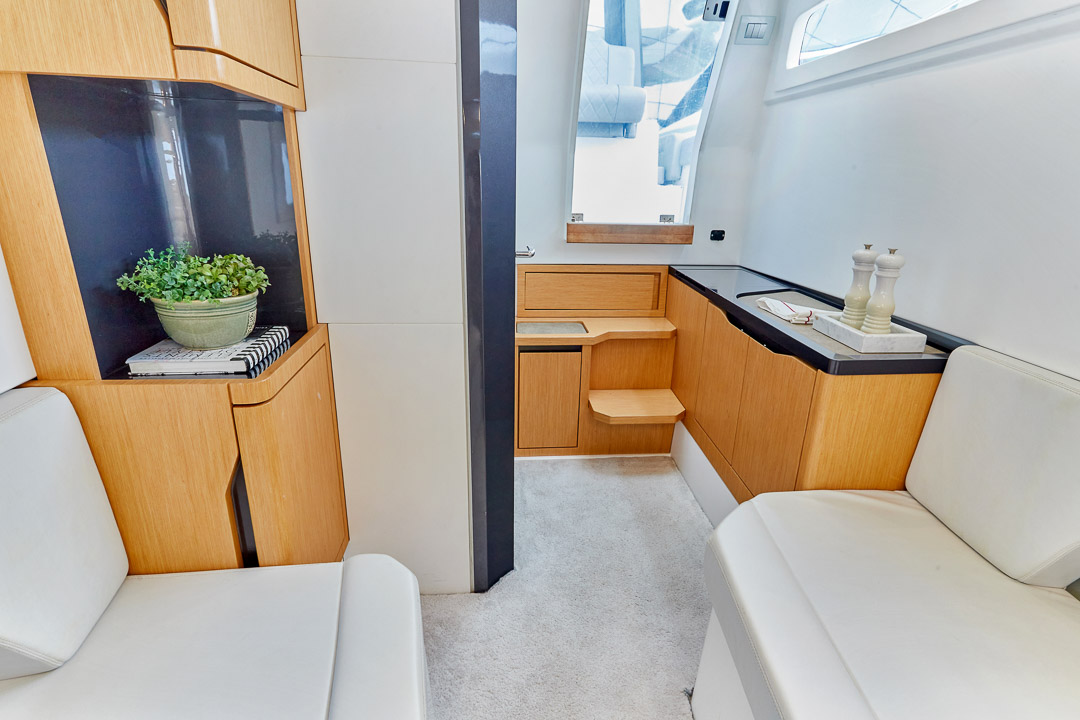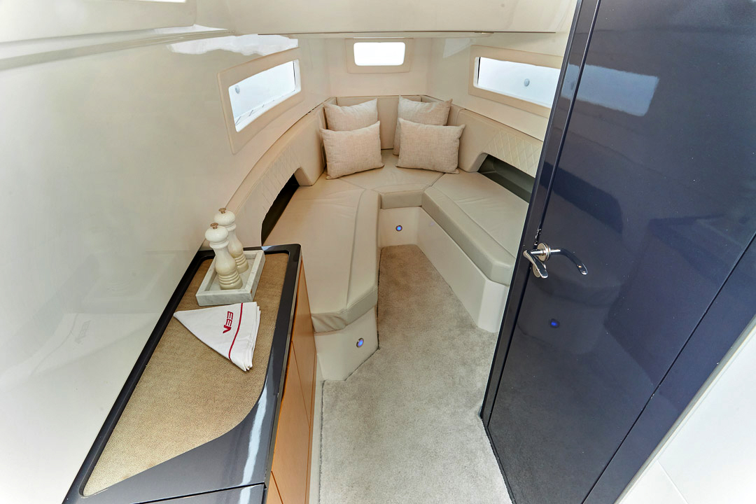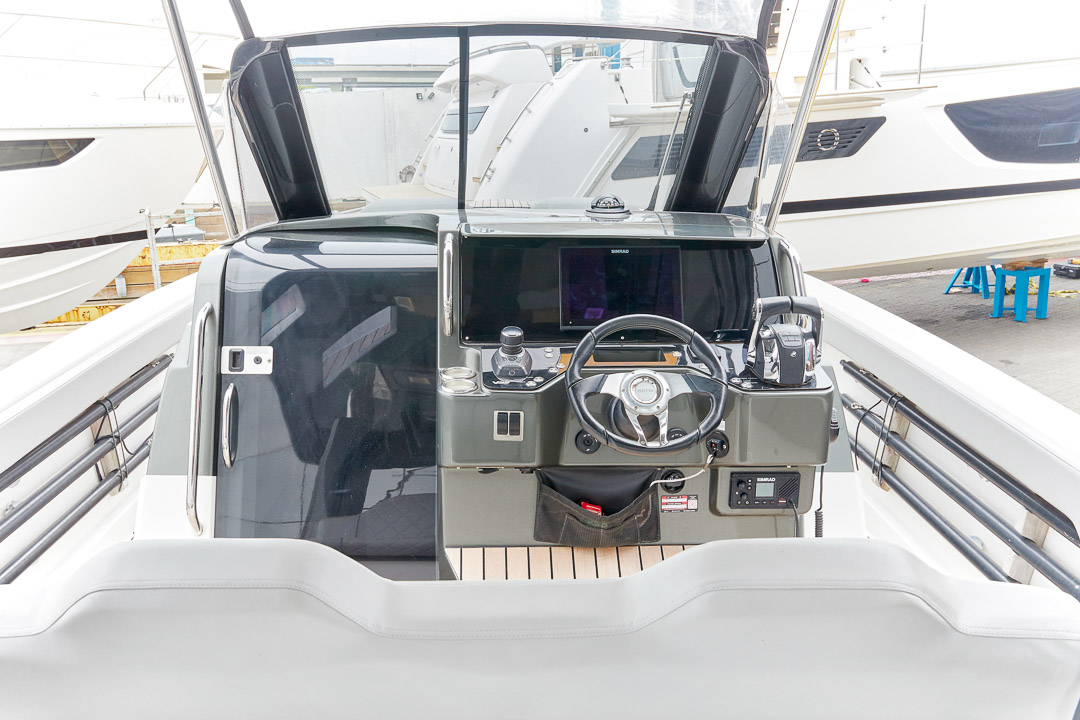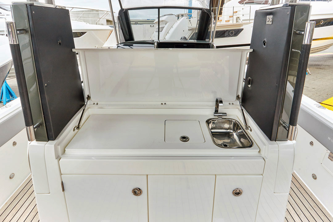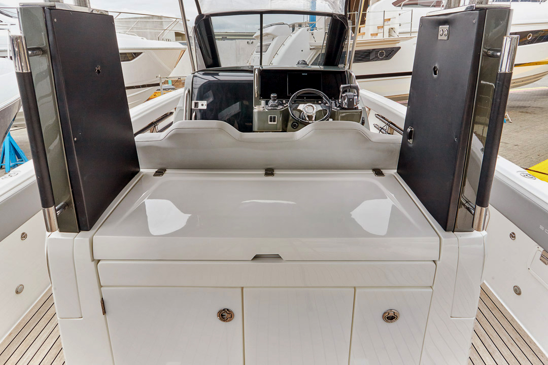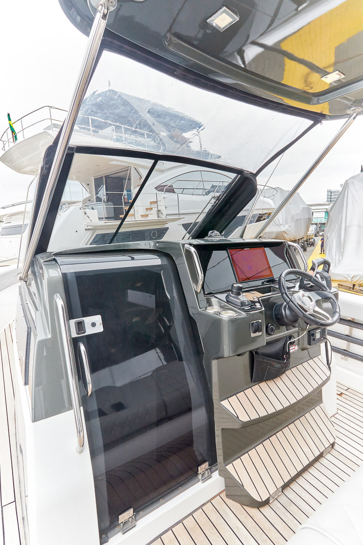 Joystick, chuveiro na plataforma, luz strobo, antena e rádio VHF, churrasqueira a carvão, ar condicionado, módulo, guincho, kit salvatagem, teca no cockpit, tapete interno, bar externo, caixa de gelo, som, GPS, sonda, auto falantes.
